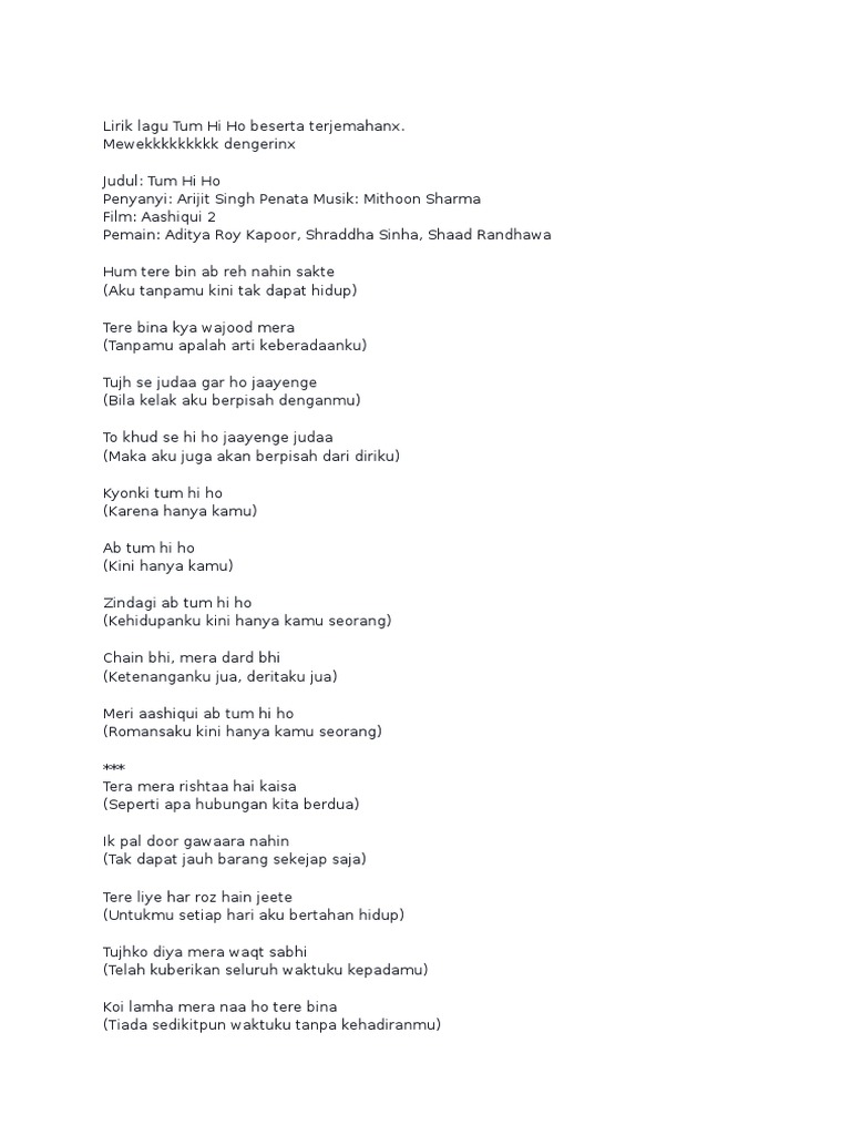 Lirik Tum Hi Ho Cari Pembahasannya